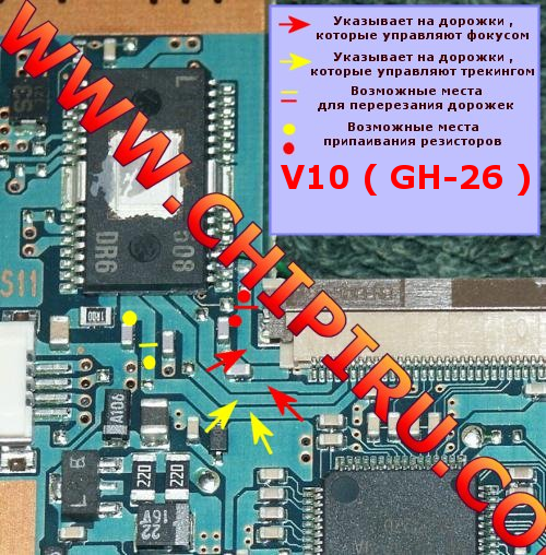 желтыми стрелками указано прохождение дорожек цепи трекинга , а красными