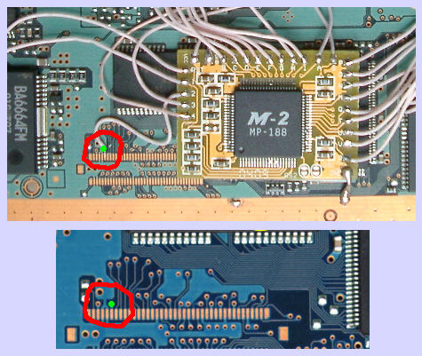 проводочком ( проще сделать соединение оловом , кинув " гулю" ), посмотрите