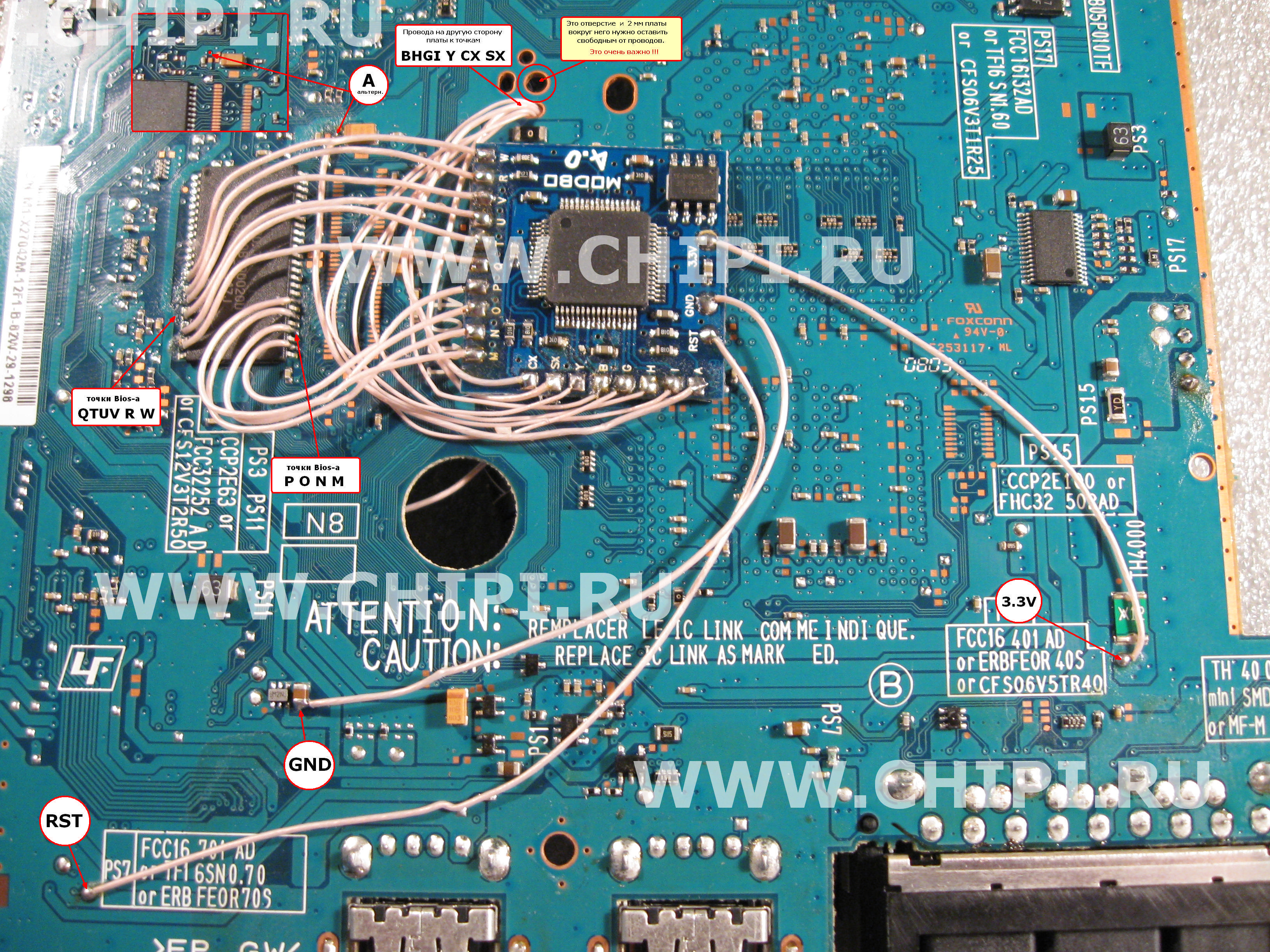 информацию по поэтапной установке модчипа и указания не ставить платку защиты до
