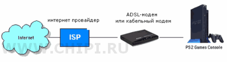 сетевой адаптер своей игровой приставки с интернет-модемом . Вставляете