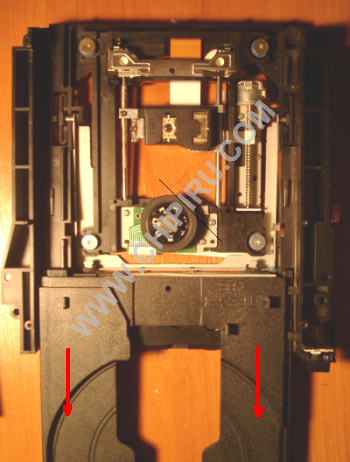 ( на нижнем фото обведен кружочком ) в паз лотка ( указан на фото стрелкой