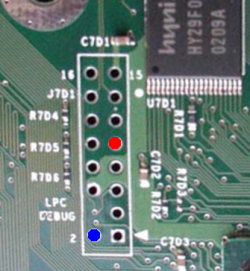 на фото точки на разъеме LPC приставки (см. фото):