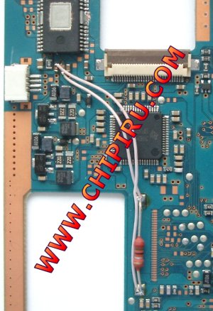 разреза. Желтые кружочки - это возможные точки подпайки проводов от резистора.