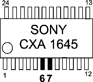 Диаграмма по установке модчипа на модель SCPH-5502 ( SCPH-5501) STEP 1. В комплекте с чипом входит кварц на 4.43Mhz и два конденсатора на 22pf. Все это нужно спаять по ниже указанной схеме. STEP 2. Вынимаем материнскую плату из компьютера , переворачиваем ее и затем сравниваем с ниже расположенной фотографией. Затем производим установку чипа в компьютер ориентируясь по той же фотографии. Номера точек на плате соответствуют номерам ножек чипа. STEP 3. Далее нужно модернизировать систему цветности компьютера . Ниже показана фотография формирователя сигнала цветности - СXA1645. Находим ее на плате и осторожно отпаиваем и отгибаем вверх 6 и 7 ножки микросхемы как показано на фото. 7 ножку м/c нужно через провод припаять к "-" ком-ра ( на фото красный провод ) , а на 6 ножку припаиваем провод от чипа " F out " ( на фото синий провод ). ( нижняя сторона платы ) WWW.CHIPI.RU