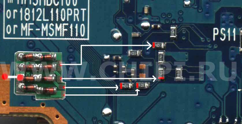полной установке модчипа сокращается с 20-ти до 11-ти. Этот вариант установки