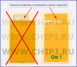 внимание , что клейкая лента не покрывает всю площадь модчипа , остается