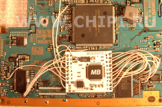 Установка модчипа Modbo 2.1  на игровую приставку Playstation 2  версии V9 ( модель SCPH-50008 ).
