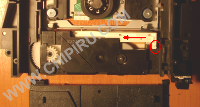 ( на нижнем фото обведен кружочком ) в паз лотка ( указан на фото стрелкой